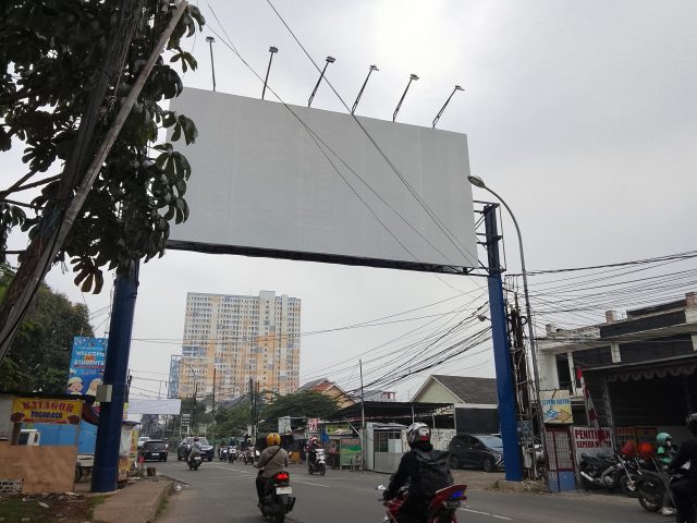 KOTA BEKASI – Reklame bando di Jalan Raya Caman, Kota Bekasi, diduga melanggar karena berdiri di atas saluran air dan trotoar terus menjadi sorotan.
