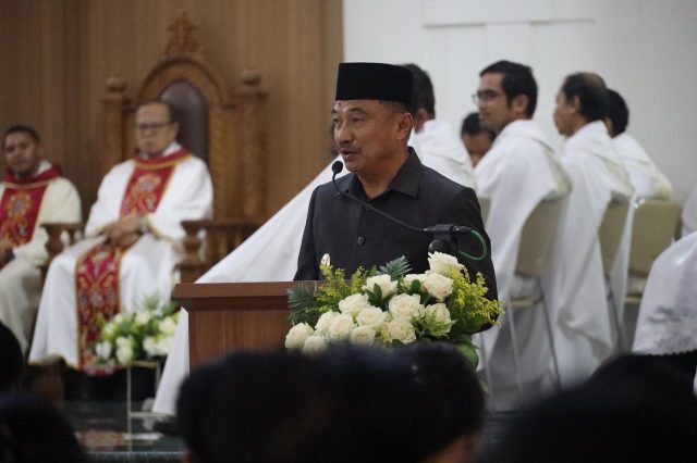 KOTABEKASI – Wakil Wali Kota Bekasi Abdul Harris Bobihoe hadiri acara pemberkatan Gereja Katolik Santo Yohanes Paulus II, Rawalumbu, Kota Bekasi.